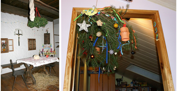 Интересно, что в Польше, Словакии и Болгарии существует подлазничка (полазничка) – рождественское украшение, которое делали из перевёрнутой верхушки хвойного дерева, которое цветной бумагой, украшали конфетами, яблоками, орехами, шарами из оплаток (тонких вафель) или соломы. Затем подлазничку вешали в Сочельник (Вигилию) над столом или в углу, для привлечения удачи и богатства.