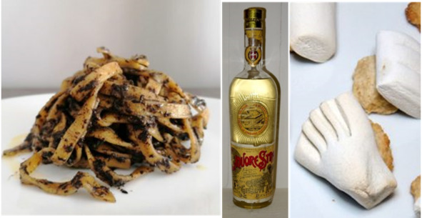 Рис. 45, 46 и 47 – Паста дей морти, ликёр «Стрега» и печенье «Кости мертвецов»