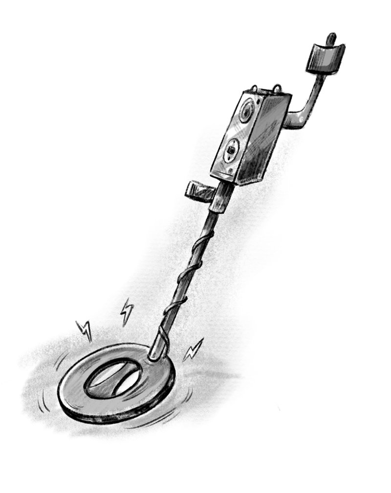 – Эй, пацаны! – выкрикнул он, подходя. В одной руке он держал свой металлоискатель. В другой – нейлоновый мешочек. Когда он приблизился, я вгляделся в ладонь, которой он держал ручку. Кончиков двух пальцев не хватало, вся рука была в шрамах. У меня екнуло сердце, захотелось сбежать. – Зачем вам эта штуковина? – Он метнул взгляд на наш металлоискатель.