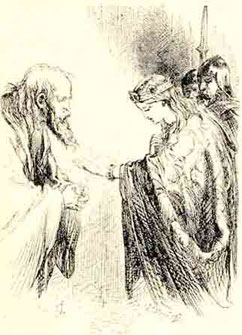 Корделии, конечно, очень хотелось увидеть поскорей отца. Но по настоянию врачей свидание состоялось лишь после того; как силы короля были восстановлены лекарствами и спокойным сном. Корделия обещала врачам все свои драгоценности за спасение отца.