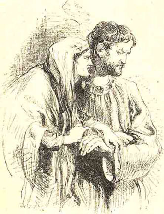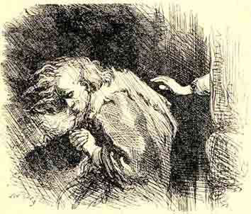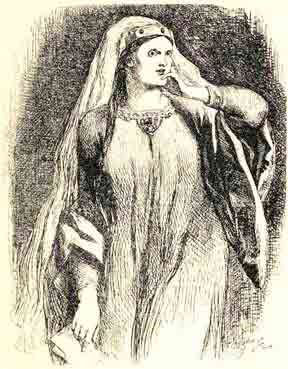 Дункан тоже почивал, утомленный путешествием. Леди Макбет вгляделась в лицо спящаго, и вдруг ей представилось, будто в его чертах есть сходство с чертами лица её отца. Рука леди дрогнула, и у нея не хватило присутствия духа совершить злодеяние.
