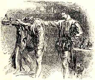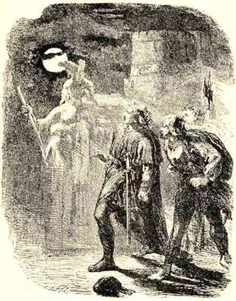 Но вот до молодого Гамлета дошли слухи, будто призрак, поразительно похожий на покойного короля, стал являться солдатам, стоящим на карауле у террасы перед замком. Рассказывали, что призрак появляется уже несколько ночей сряду, ровно в полночь, всегда в одном и том же одеянии, вооруженный с ног до головы… Многие, кому довелось видеть призрак, – а среди них был также и лучший друг Гамлета, Горацио, – подтверждали, что это истинная правда. Призрак появлялся ровно в полночь. Он был мертвенно-бледен и казался глубоко удрученным… Борода у него была с проседью. Он не отвечал, когда к нему обращались со словами вопросов, раз только поднял голову и сделал движение, как бы намереваясь заговорить, но в это мгновение послышался пронзительный крик первого петуха, и призрак моментально исчез.