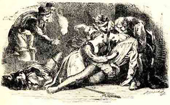 Как раз в это время в дом Отелло внесли раненого Кассио. К нему был подослан один из сторонников Яго с поручением убить Кассио.