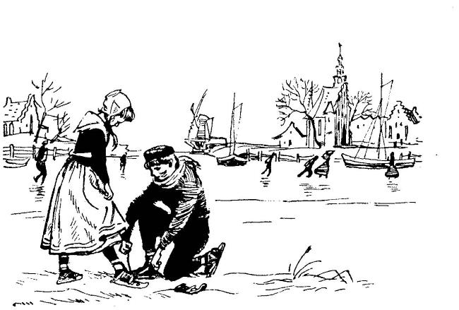 По каналу, покрытому гладким, как стекло, льдом, время от времени пробегали на коньках люди: то крестьянка с туго набитой корзиной на голове, то бойкий юноша, который спешил в город на работу и, проносясь мимо дрожавших от холода ребят, строил им добродушную гримасу.