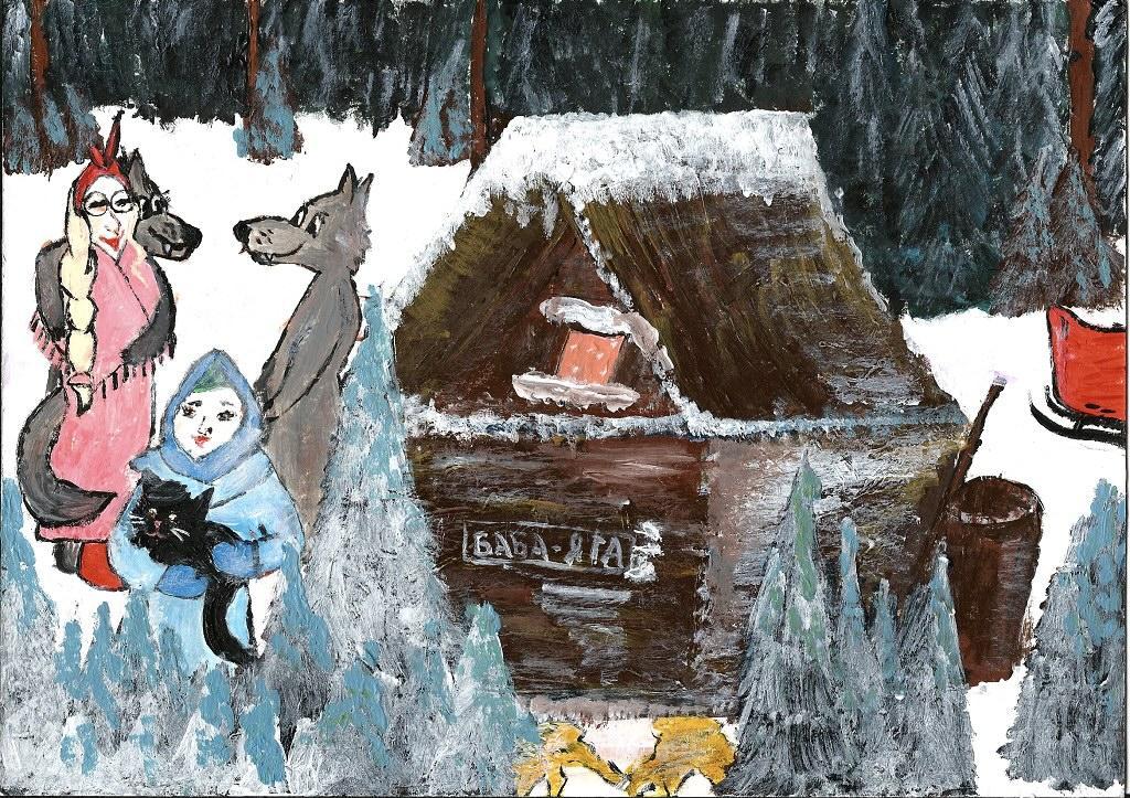 – Вперёд, мои хорошие! К Бабе-яге! Мчите быстрее ветра! – с этими словами сани взмыли в воздух и пропали из виду.