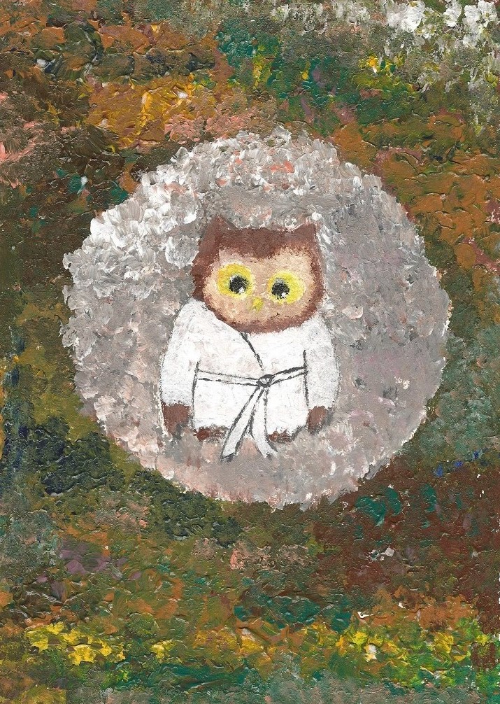 С той поры житья сове совсем не стало. Где это видано- не сова на мышей, а мыши на сову охотиться начали! Идёт она однажды по лесу, грустная- прегрустная, вдруг видит- объявление на дереве висит: «Идёт набор в школу восточных единоборств. Главный тренер медведь Топтыгин, первый дан по поеданию малины.»