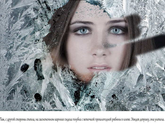 Там, с другой стороны стекла, на заснеженном карнизе сидела голубка с кистью рябины в клювике. Увидев девушку, она улетела.