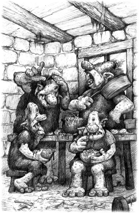 (Ах, да, чуть не забыл. Это одноглазые тролли: у каждого есть только по одной глазнице, а глазное яблоко у них одно на всю семью. И они его потеряли несколько недель назад и до сих пор не нашли.)