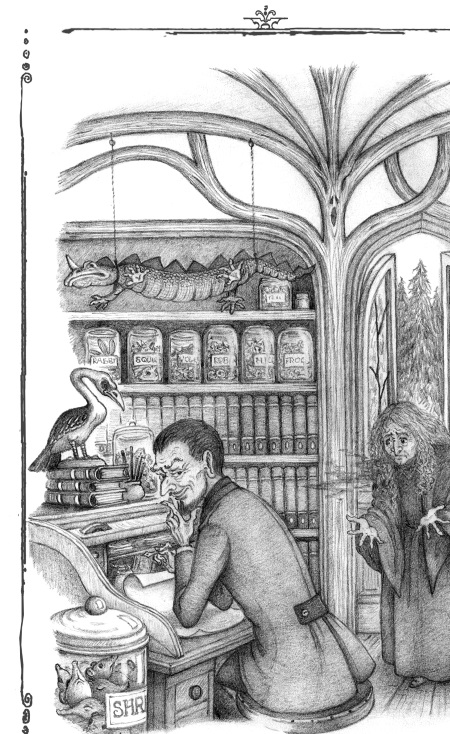 Человек, к которому она обращалась, сидел, ссутулившись, за письменным столом. В руке он держал перо, а перед ним лежал чистый лист пергамента. И то, и другое наколдовала ему его слуга, Ведьма теней. Это комната была его кабинетом, и здесь он проводил теперь большую часть своего времени. Возле письменного стола стоял книжный шкаф, на полках которого была только одна книга (зато представленная во множестве экземпляров). Это был бестселлер, который он написал много лет назад: книга под названием «Существа Тенистого леса». На верхних полках шкафа вместо книг стояли головы. В банках, головы тех, кого он называл Врагами леса. Это были те существа, которые попытались – и не смогли – сбежать во Внешний мир.