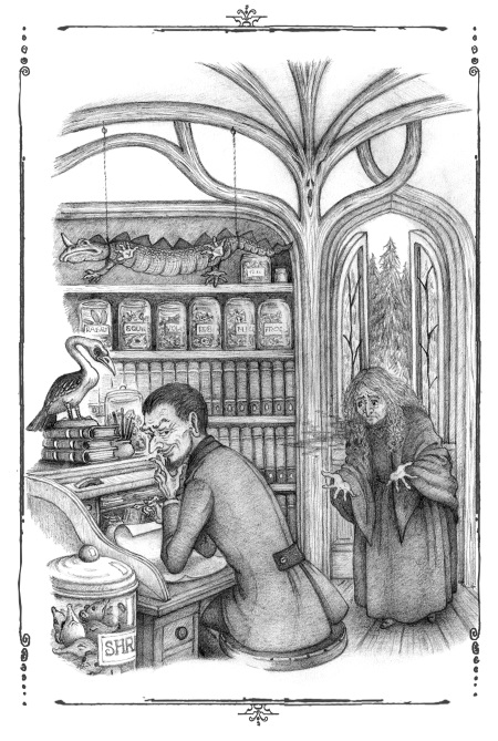 Человек, к которому она обращалась, сидел, ссутулившись, за письменным столом. В руке он держал перо, а перед ним лежал чистый лист пергамента. И то, и другое наколдовала ему его слуга, Ведьма теней. Это комната была его кабинетом, и здесь он проводил теперь большую часть своего времени. Возле письменного стола стоял книжный шкаф, на полках которого была только одна книга (зато представленная во множестве экземпляров). Это был бестселлер, который он написал много лет назад: книга под названием «Существа Тенистого леса». На верхних полках шкафа вместо книг стояли головы. В банках. Головы тех, кого он называл Врагами леса. Это были те существа, которые попытались – и не смогли – сбежать во Внешний мир.