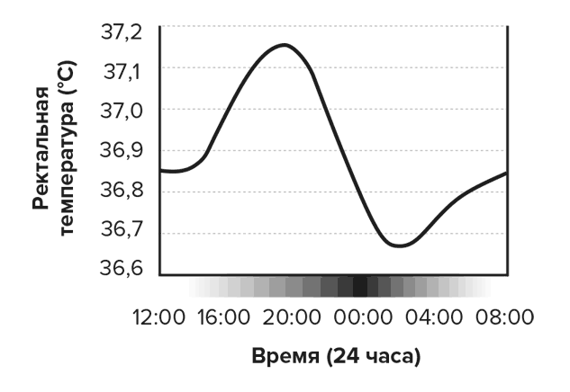 Рис. 1. Типичный 24-часовой циркадный ритм (внутренняя температура тела)