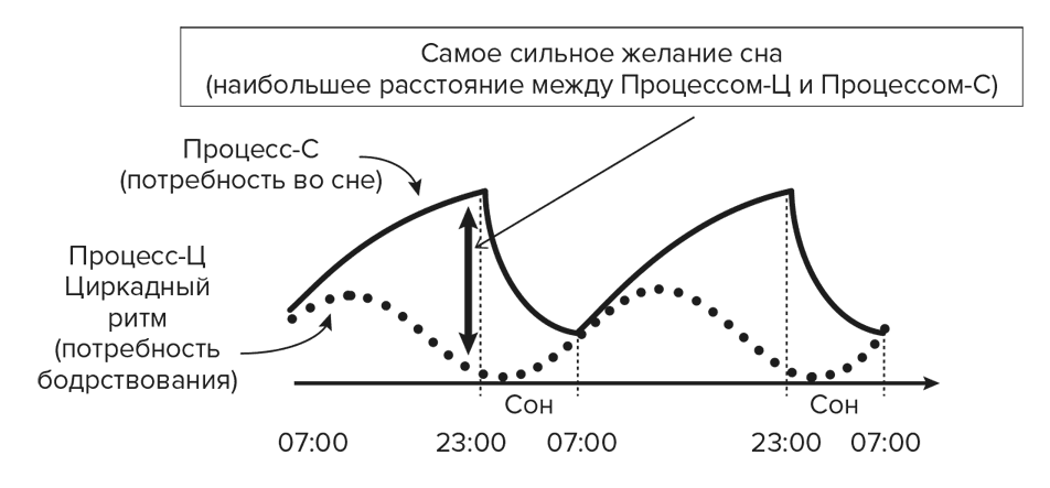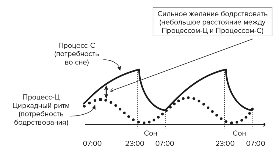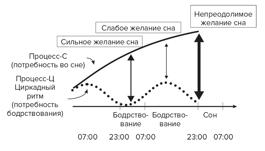 Рис. 4. Два фактора, регулирующие сон и бодрствование