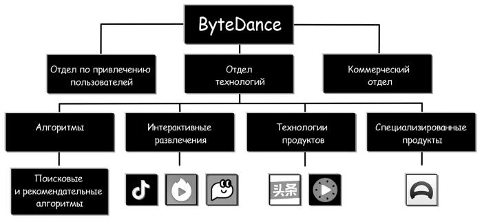 В ByteDance существуют три ключевых подразделения: отдел по привлечению пользователей, отдел технологий и коммерческий отдел. Соответственно, они отвечают за рост числа пользователей, разработку продуктов и монетизацию.