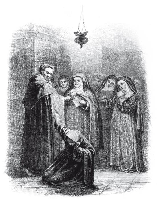– Поразительная дерзость! Как? Монастырь Святой Клары станет прибежищем распутниц? И я допущу, чтобы Церковь Христова укрыла на груди своей разврат и мерзость? Недостойная тварь! Такое милосердие сделает меня твоим сообщником. Снисходительность тут преступна. Ты предалась сластолюбию соблазнителя, в нечистоте своей ты загрязнила святое одеяние и смеешь думать, что ты достойна моего сострадания? Прочь, не дерзай долее меня задерживать! Где мать настоятельница? – добавил он, повышая голос.