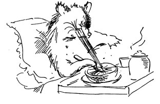 “Now I wonder what she means by that?” said Paddington. But he didn’t worry about it for very long. There was far too much to do. It was the first time he had ever had breakfast in bed and he soon found it wasn’t quite so easy as it looked. First of all he had trouble with the grapefruit. Every time he pressed it with his spoon a long stream of juice shot up and hit him in the eye, which was very painful. And all the time he was worried because the bacon and eggs were getting cold. Then there was the question of the marmalade. He wanted to leave room for the marmalade.