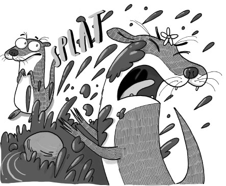 The rock landed in a puddle on the bank and sent a great muddy SPLASH all over Coco, who had just come to the end of her lengthy morning grooming ritual.