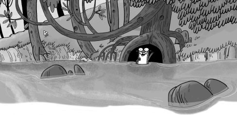 “See you tomorrow, Woody!” Sooty Black yelled back, waving both arms at his furry brown friend. Then Sooty dashed along the water’s edge and vanished into the roots of an overhanging tree that concealed his family den.