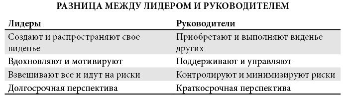 В этом главное отличие руководителей и лидеров. На вопрос от Harvard Business Review[13] «Что отличает хорошего руководителя?» Джек Уэлч, председатель и исполнительный директор GE[14], ответил, что предпочитает термин бизнес-лидер, а «хорошие бизнес-лидеры создают видение, формулируют его, страстно претворяют в жизнь и неуклонно доводят его до конца»[15].
