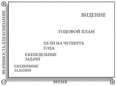 Если вы как лидер оцениваете задачи по временным срокам, то ежедневные и еженедельные кажутся более важными, чем долгосрочная перспектива – это ведь так не скоро! Но если сравнивать задачи по их относительной ценности, то самым важным для лидера оказывается именно создание видения.