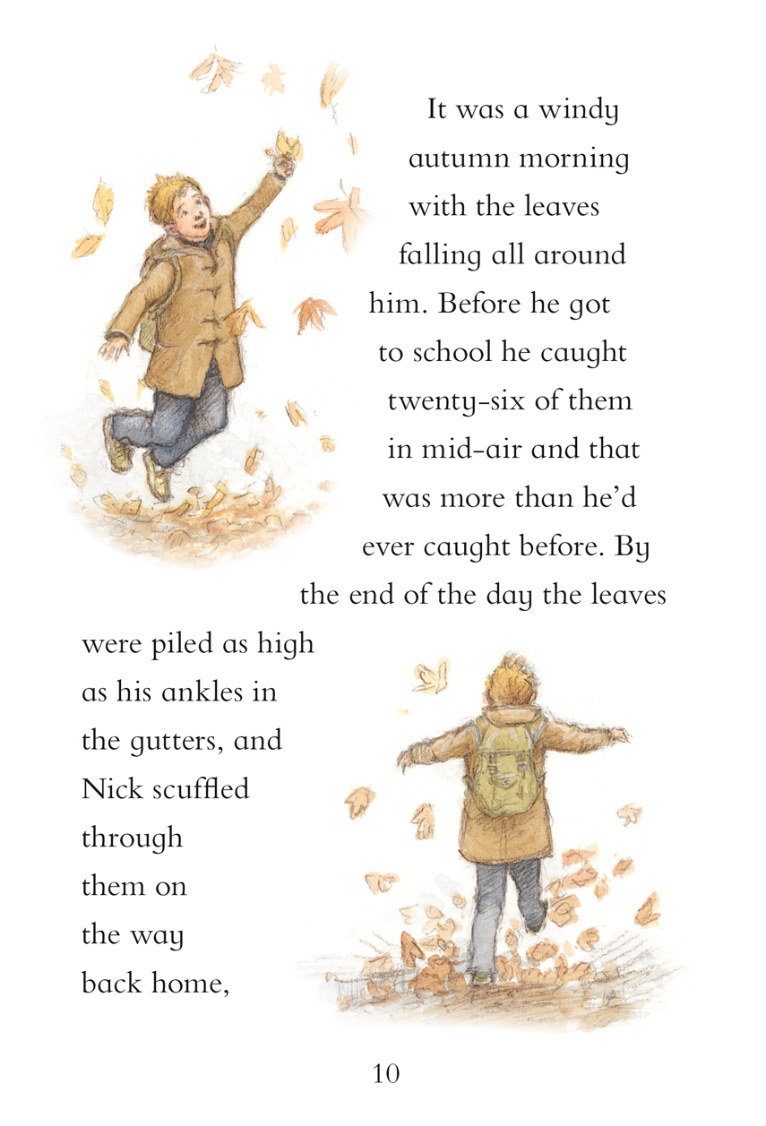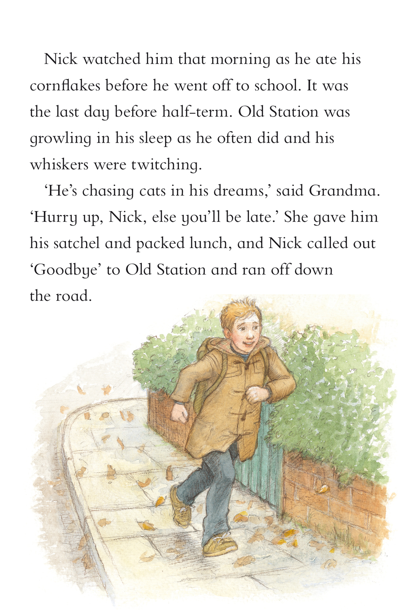 ‘Hurry up, Nick, else you’ll be late.’ She gave him