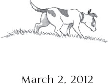 Jasper had run on ahead of us, and was snuffling about under a fallen tree at the edge of the wood. Then he was exploring along the tree line on the crest of the hill, nose to the ground.