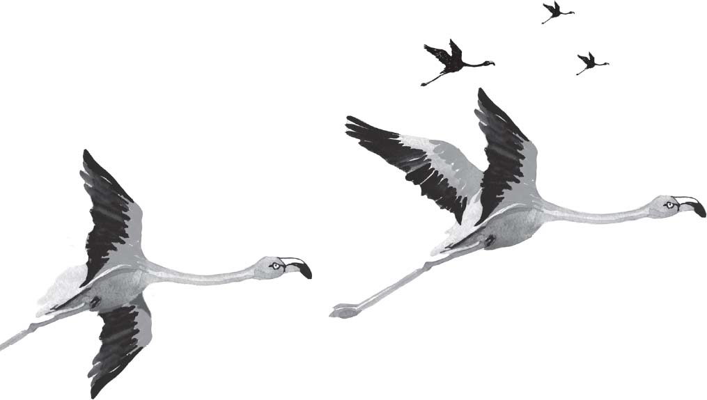 I marvelled at the elegance of these creatures, at the oddness of their balletic gait, and their absurd, outsize curved bills, at the incongruity of their startling pinkness. Their stick-like legs seemed to be wading backwards through the water, and yet, impossibly, they were moving forward. There was no logic to their knee joints. Their bills were fishing backwards too. How did they do that? They could stand one-legged in this wild wind and not fall over. They ran on water to take off and land. How did they do that?