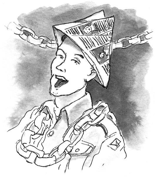 Mum came up today and read me a letter from Dad. It’s such a long time since I saw him I find it difficult to see his face in my head any more. I tried to hear his voice as she was reading the letter, but I couldn’t. He says they had corned beef and tinned potatoes for Christmas lunch, and they wore paper hats made out of newspaper, sang Christmas carols and thought of home. He sounded so sad and far away. When Mum finished reading she was sad too. I could tell she wanted to cry but she wouldn’t let herself.