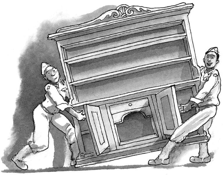 Oh yes, I forgot. This afternoon Adie introduced me to his friend Harry, while they were carrying out our kitchen table. He’s from Atlanta too, and he’s black like Adie is. They’re both quite difficult to understand sometimes because they speak English differently from us. Adie does most of the talking. “Harry’s like my brother, Lily, not my brother brother, if you get my meaning, just my friend. Like twins, ain’t we, Harry? Always on the lookout for one another. Harry and me, we growed up together, same street, same town. We was born on the same day too – 25th November. Both of us is eighteen, but I’m the oldest by six hours – that’s what our mamas told us, and they should know I reckon. Ain’t that right Harry?” Harry just smiled at me and nodded. “Harry don’t say much,” Adie said, “but he thinks real deep.” The two of them worked together all day, fetching and carrying. They must be very strong too. They picked up Grandfather’s dresser all by themselves. No huffing, no puffing. They just picked it up as if it was light as a feather.