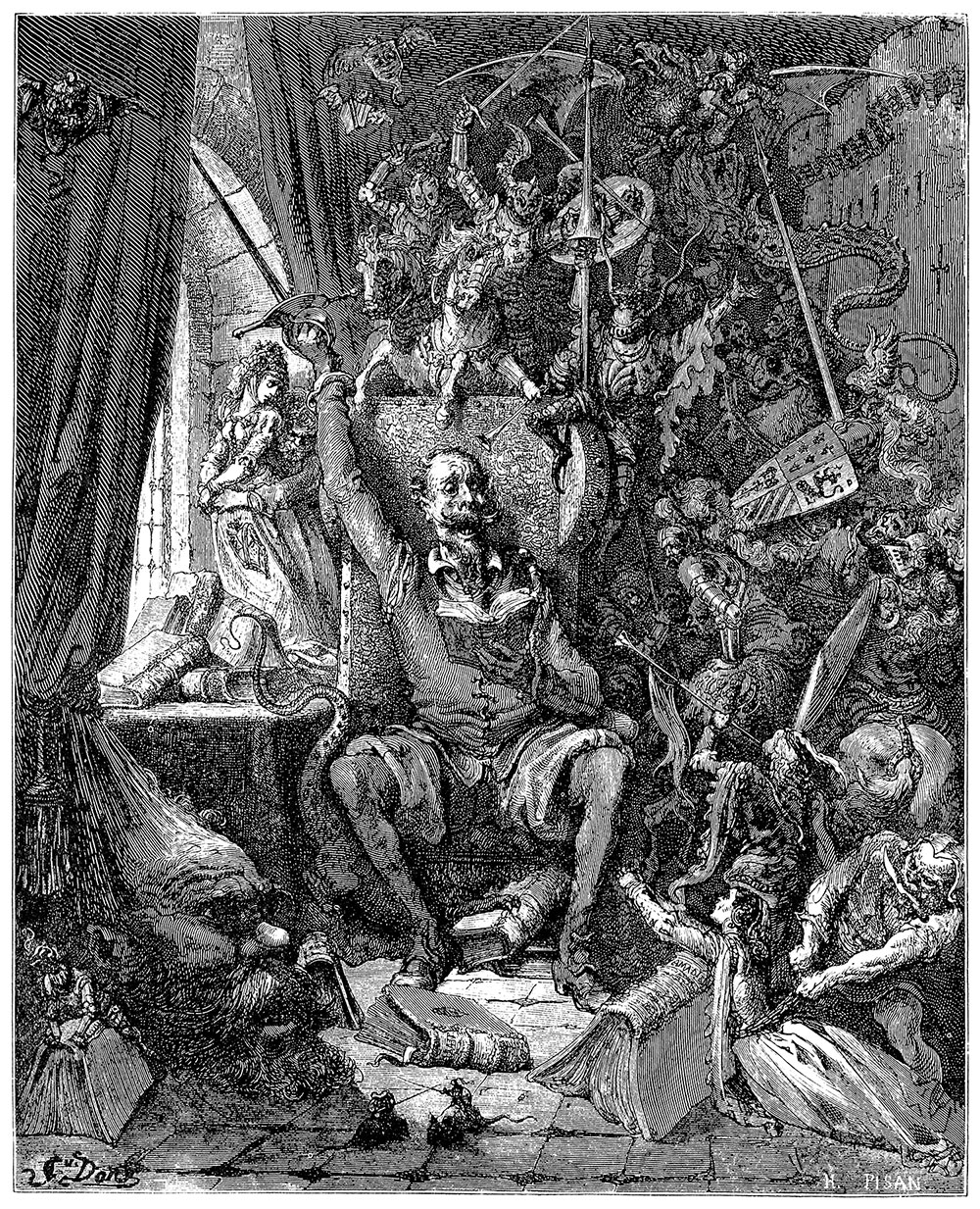 Словом, наш идальго до того погрузился весь в чтение, что проводил над книгами дни и ночи напролет, и, таким образом, от малого сна и беспрерывного чтения мозг его так высох, что он лишился рассудка. Воображение его наполнилось всем тем, что он читал в своих книгах: чародействами, ссорами, сражениями, вызовами на поединок, ранами, ухаживаниями, любовными приключениями, ревностью и невозможными нелепостями. В его голове так крепко засела уверенность, что вся эта масса фантастических выдумок, которые он читал, – не что иное, как истина, что для него не существовало другой, более достоверной, истории в мире. Он говорил, что Сид Руи Диас, несомненно, храбрый рыцарь, но что его нельзя даже сравнить с рыцарем Пылающего Меча, который одним взмахом положил на месте двух дерзких и чудовищных великанов; Бернардо дель Карпио нравился ему несколько больше, потому что он в Ронсевале убил очарованного Роланда, прибегнув к уловке Геркулеса, когда тот задушил в своих объятиях Антея, сына Земли. Он отзывался очень хорошо о великане Моргайте, так как, происходя из поколения гигантов, которые все заносчивы и невежливы, он один был приветлив и благовоспитан. Но больше всех нравился ему Рейнальдос де Монтальбан, особенно когда он выезжал из своего замка и грабил все, что ему попадалось под руку, и когда он похитил за морем истукана Магомета, всего литого из золота, – как о том повествует его история. А если б он мог дать хорошую встрепку изменнику Галалону! За это он отдал бы и ключницу, которую держал, и даже свою племянницу в придачу.