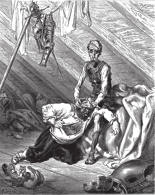 Хозяин вручил Санчо все нужное, и тот отнес это Дон Кихоту.