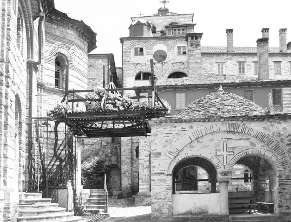 Удивительное дело: недавний страшный пожар уничтожил почти половину строений монастыря, но чудотворная лоза осталась невредимой, хотя опирается на деревянную «крышу» импровизированной беседки. Доски могли вспыхнуть только лишь от критической температуры, но Господь уберёг это сокровище, так же как и чудотворную маслину в Пантелеимоне.