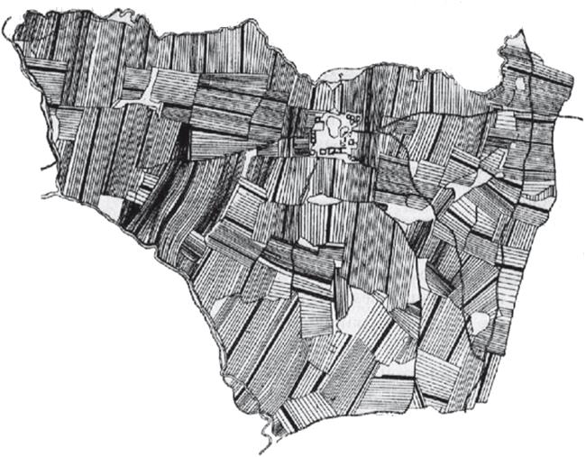 Схема 2. Деревня Орслев в Дании после разверстания. Полосы сведены воедино.