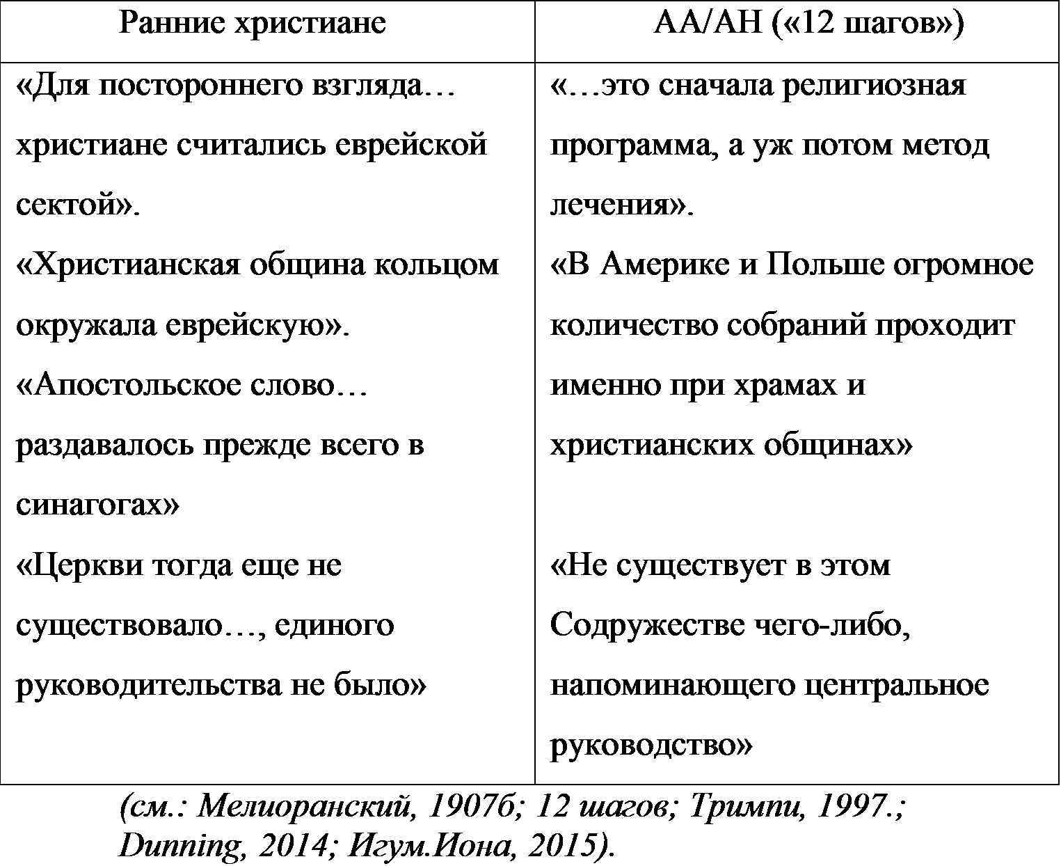 Другое дело, что сама история Сообщества АА/АН, если её рассматривать с точки зрения взаимоотношений их с Церковью, имеет много точек соприкосновения с историей раннехристианских общин в еврейской диаспоре в аспекте их взаимоотношений с синагогами в I-IV вв.н.э. Здесь историк найдёт полный набор аналогий, и я приведу только некоторые.