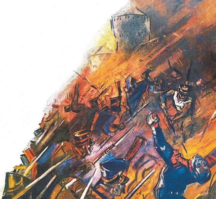 После страшной бомбардировки города Наполеон бросил на штурм корпуса Нея и Даву. Бои шли у городских ворот, на бастионах. На улицах, в садах кипели схватки.