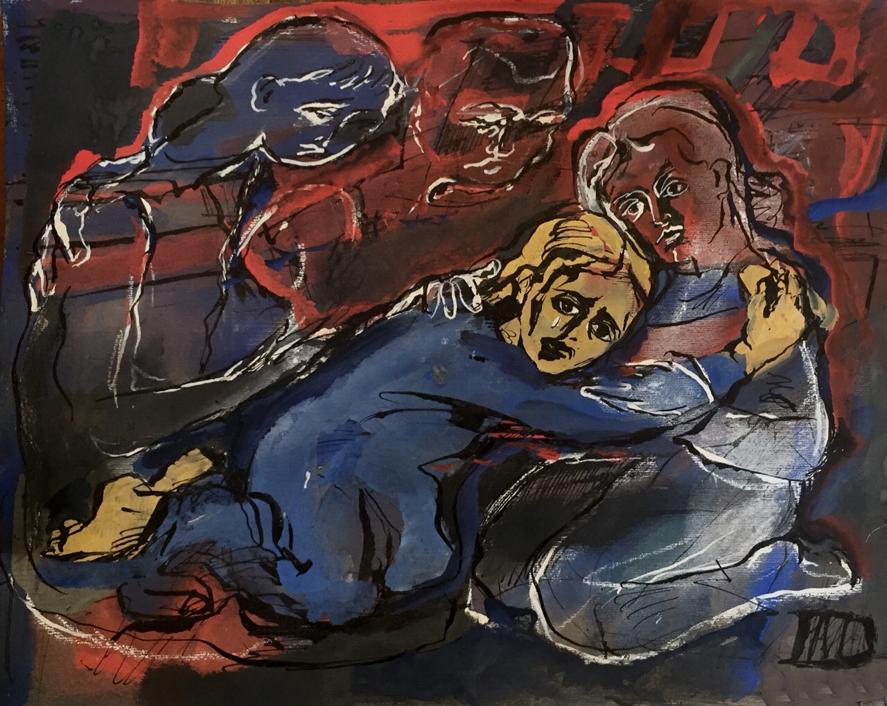 Мы шли по детским рисункам, которые заполонили пол, а затем и стены. Чем больше их становилось, тем они становились мрачнее. В конце концов, бумага превратилась в сплошные черные листы, зарисованные ручкой или карандашом. Клубок черных линий в виде воронок, сеток, геометрических фигур и хаотичных лабиринтов. А потом на рисунках начала появляться кровь. Брызги крови. Сначала капли, потом струи, а потом чуть ли не из ведра плескали на стены и пол.