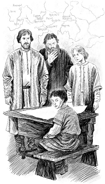 Князь Олег как-то зашёл посмотреть, как мы обучаемся. А мы как раз земной чертёж осваивали. Я рассказывал Варсонофию, что на нём изображено: