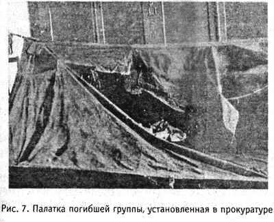 На основе проявленных пленок, экспонированных туристами перед ночлегом, с учетом плотности негативов, чувствительности пленки (так как сохранились коробочки от нее), установок диафрагмы и выдержки на аппаратах мне удалось „привязать" кадры ко времени съемки и получить богатейшую информацию, но это не отвечало на главный вопрос: что явилось причиной бегства туристов из палатки.