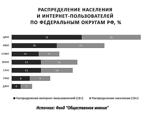 ✓ Выравнивание распределения интернет-пользователей и населения по федеральным округам РФ.