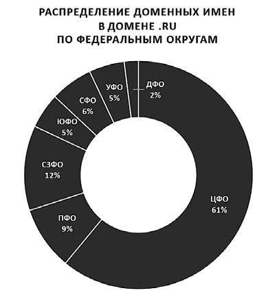 ✓ Преобладание Центрального ФО в описанных выше распределениях объясняется концентрацией головных офисов крупных и средних компаний в Московском регионе. Это говорит о хорошем потенциале домена .RU за счет регионов.
