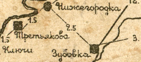 Изгнанные из Уфы нижегородцы поселились рядом с небольшим сельцом (хутором) Куровское, где давно обосновались дворяне Куровские. На 1861 г. здесь располагались три имения вообще без крепостных и стояли три усадьбы с одними дворовыми: Куровского (4 муж., 4 жен.), Поповой23 (6 муж., 4 жен.) и Черепановой24 (1 жен.), но «проживает только одно семейство». В 1874 г. упоминалось владение Куровского, Елены Николаевны Поповой и Фёклы Ивановны Куровской при соседней Третьяковке (13,5 и 11,5 дес.).