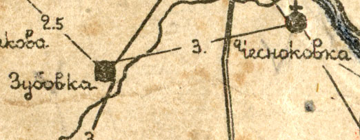 Рядом с основным почтовым трактом из Уфы в Стерлитамак, на левом берегу речки Берсианки, недалеко от села Чесноковки стояла дер. Зубово. Зубовы – известная дворянская фамилия, ближайшие родственники Аксаковых (мать С.Т. Аксакова – Мария Николаевна, урождённая Зубова), история которых подробно изучалась104. Зубовым принадлежало ещё имение в Касимово. А сельцо Зубовка в начале XIX в. находилось в общем владении дяди и тёти С.Т. Аксакова майора Сергея Николаевича Зубова, подпоручицы Надежды Николаевны Леонтьевой, а также коллежского ассесора Никиты Андреевича Гриденкина (с женой Марией Васильевной) и титулярной советницы Елизаветы Васильевны Сплендаринской105.