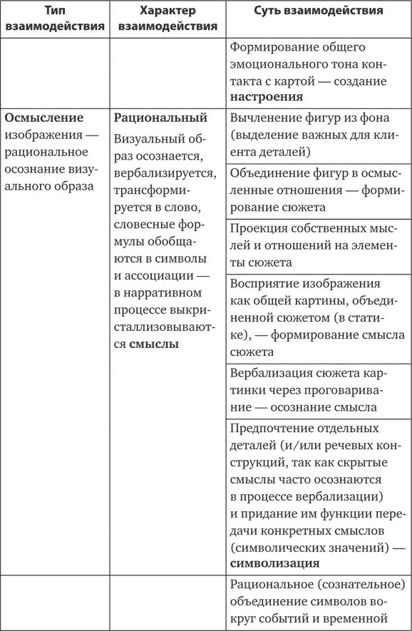 Таблица 1.1. Тип, характер и суть взаимодействий клиента с метафорической картой