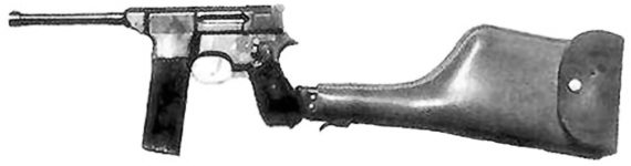 • знаменитые автоматические пистолеты Маузер (семейство С-96, родоначальником которого является пистолет образца 1896 года);