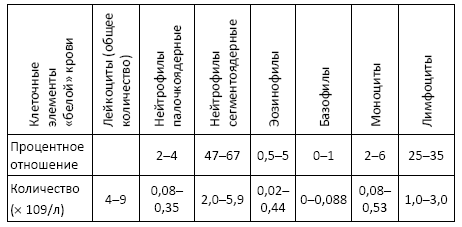 Таблица № 1. Нормальные показатели «белой» крови