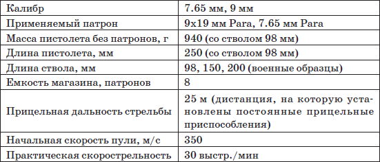 Парабеллум выпускался со стволами длиной от 98 до 400 мм, причем длинноствольные модели, предназначенные для гражданского рынка, оснащались прикладом и цевьем, приближаясь по свойствам к легкому карабину.