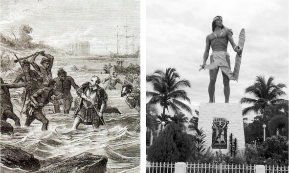 Гибель Магеллана в битве у о. Мактан (рисунок 1860 г.) и памятник Лапу-Лапу в г. Себу