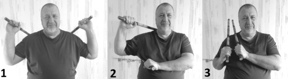 Основные позиции рук в Добле Бастон при выполнении координационных упражнений – абьерта (1); серрада (2); параллель (3)