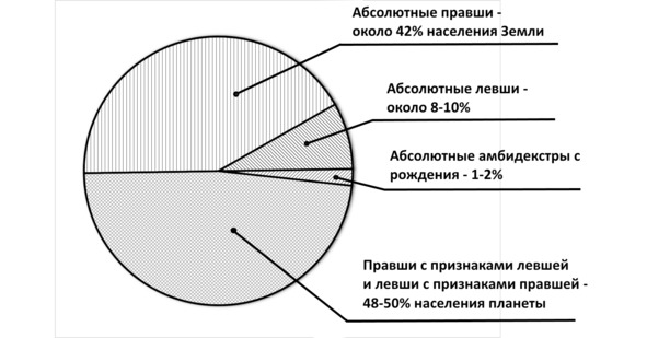 Соотношение правшей, левшей и амбтдекстров на Земле