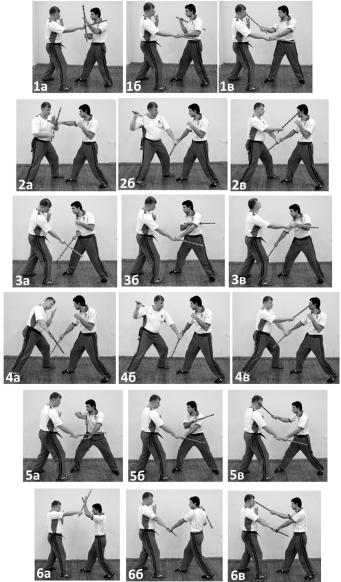 – борьба на земле – в этом положении сочетаются техники борьбы в партере и разнообразные действия палкой.