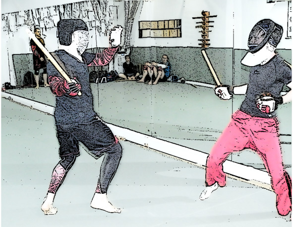 – дистанция клинча – фактически, это дистанция борьбы в обхват. Основную роль играют удары локтями и коленями, броски и сваливания. Палка может применяться очень ограниченно, в основном, для различных надавливаний, коротких ударов и в качестве рычага.